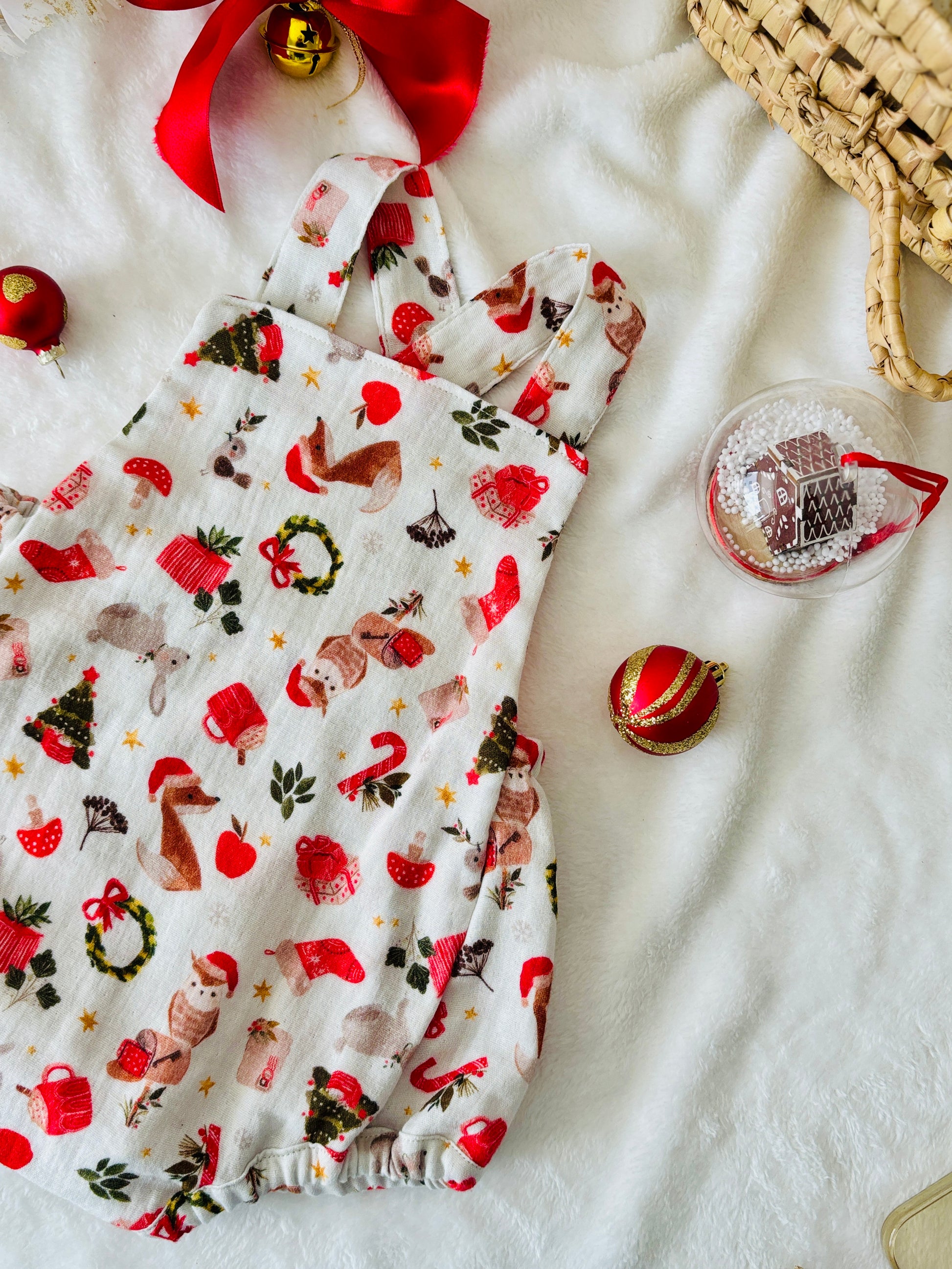 Cette jupette en gaze de coton, ornée de jolis motifs de Noël et de son bandeau assorti seront Idéal pour votre shooting de Noël et soirée du réveillon. Une tenue unique pour vos Minis qui ne passeront pas inaperçus.